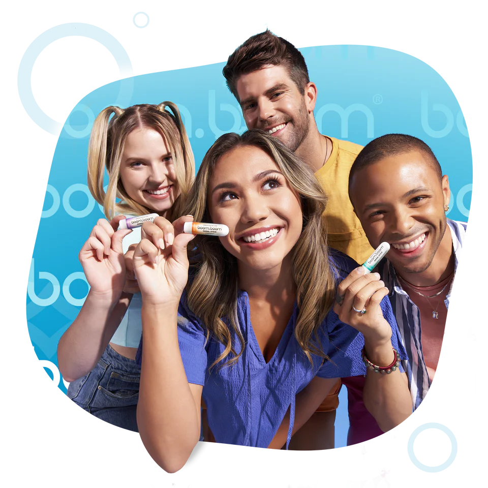 Nasal inhalers like BoomBoom are different. Your sense of smell is very powerful and plays a major role in how you feel. So when you blast your nasal cavity with tasty berry-flavored menthol, peppermint, and eucalyptus oils, you’ll experience a unique dynamic and mental energy... not a chemical energy. It’s going to give you a quick refreshing boost that feels amazing. And if you’re in a funk, it will help SNAP you out of it… but in a much more natural way!